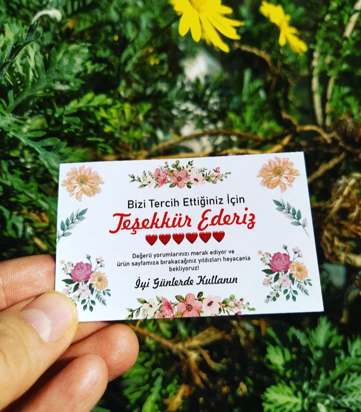 Bu ürün kredi kartı kadar kalın olup selefonlu ürün olduğu için güneş, yağmur gibi etkilerden fazla etkilenmez.