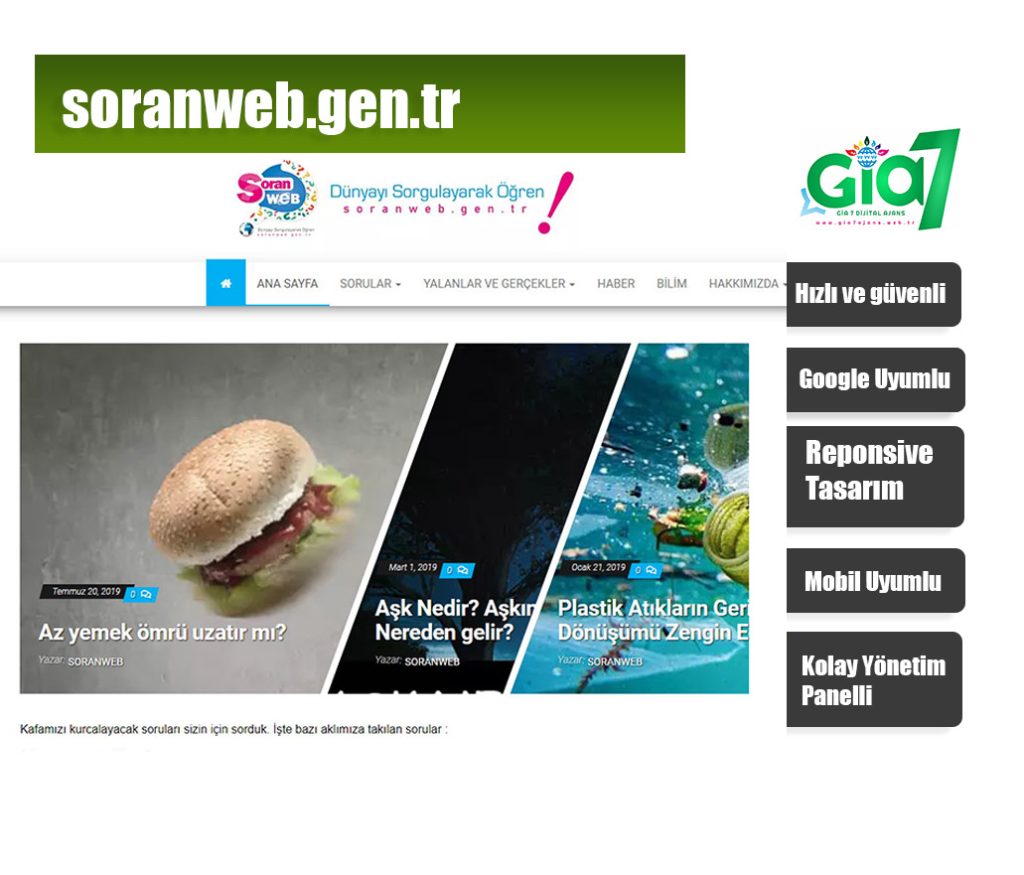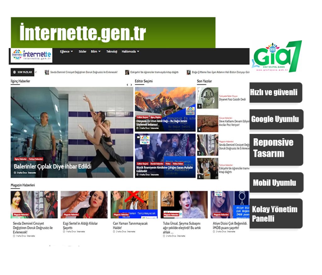 Gia 7 ile hızlı açılan siteler yapar!  Yaptığımız sitelerin Google Page Speed Puan değeri 60 ve üzerindedir.